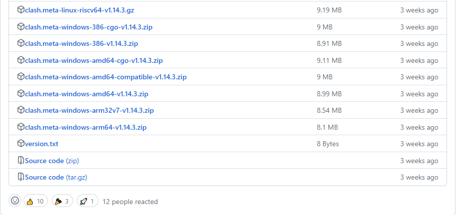 打开 Clash Meta 的项目下载地址:https://github.com/MetaCubeX/Clash.Meta/releases ,下载适合自己电脑的版本